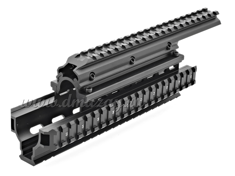 Данное тактическое цевьё устанавливается на ствол и газоотводную трубку оружия вместо штатного цевья.