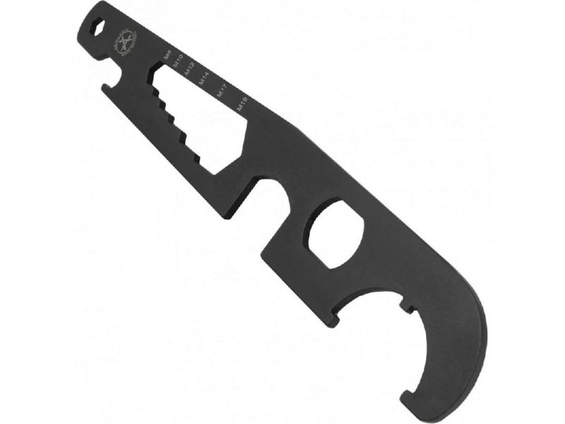 Ключ предназначен для закручивания и откручивания контргайки телескопического приклада тип М4 Mil-Spec/Com-Spec. Имеет три точки фиксации на гайке. Ключ изготовлен из стали, с последующей карбонитрацией (диффузионное покрытие) поверхности, поверхностный слой упрочнен, не ржавеет