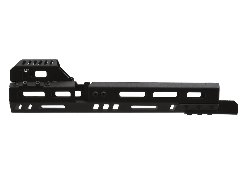 Оборудовано разъемами M-LOK (М-ЛОК) для использования навесного оборудования, такого как: рукоятки, ЛЦУ, фонари, коллиматоры и т.п.;
