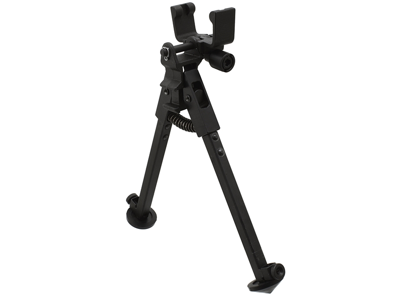 Сошка имеет модульную конструкцию: опорную часть и узел крепления на оружие, соединенные между собой осью.