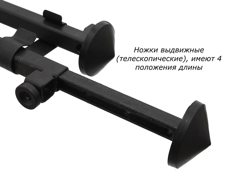 Телескопические «ноги» позволяют изменять высоту сошки по желанию потребителя.