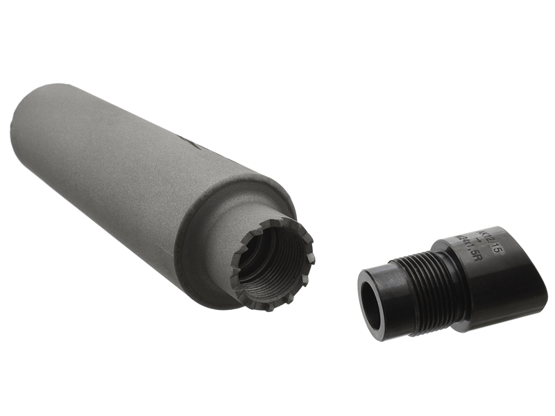 На конце имеет резьбу M24x1,5R, что позволяет накрутить на него банки (ДТКП, модераторы звука) от Автомата Калашникова АК-74 и прочие версии (Сайга-223, Сайга-МК).
