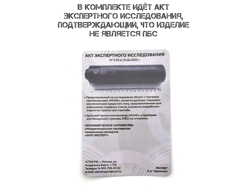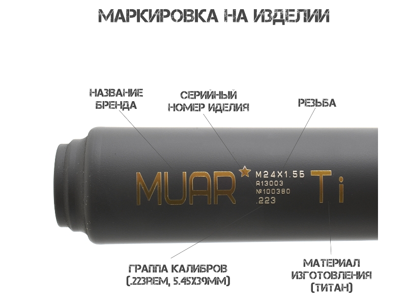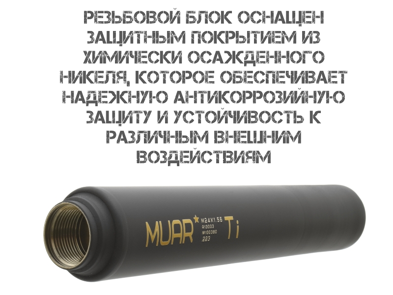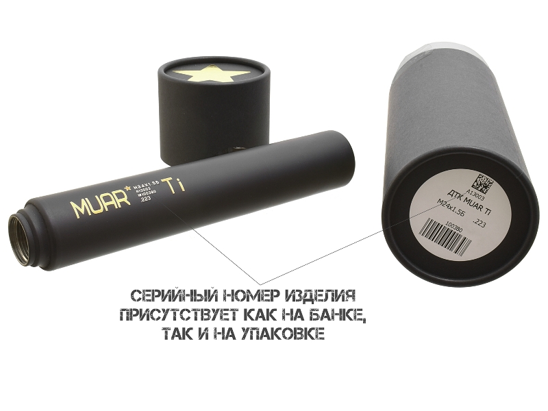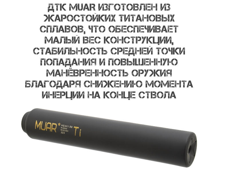 ДТКП (ДТК закрытого типа, банка) газоразгруженный Muar (Муар) титан АК-74, Сайга-223, Сайга-МК 5.45, резьба 24x1,5r