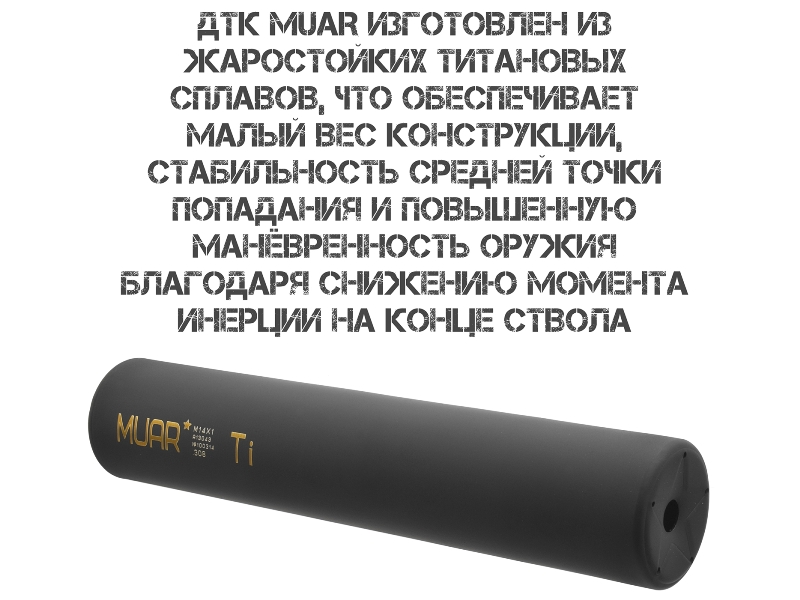 Антибликовое термостойкое покрытие Cerakote обеспечивает не только защиту от износа, но и превосходный внешний вид изделия. Благодаря инновационным технологиям производства достигается минимальный вес при максимальном ресурсе эксплуатации. Бессрочная гарантия подтверждает высочайшее качество ДТКП Muar.