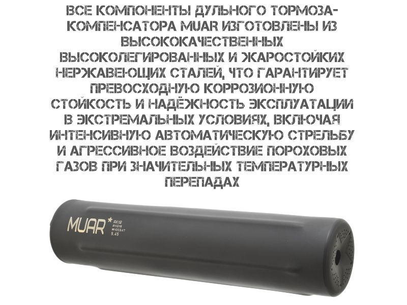 Профессиональный ДТК закрытого типа от бренда Muar, разработанный специально для автоматов АКМ и карабинов Вепрь-308. Модель Heavy Metal изготовлена из высококачественной нержавеющей стали, обеспечивающей исключительную надежность и долговечность.