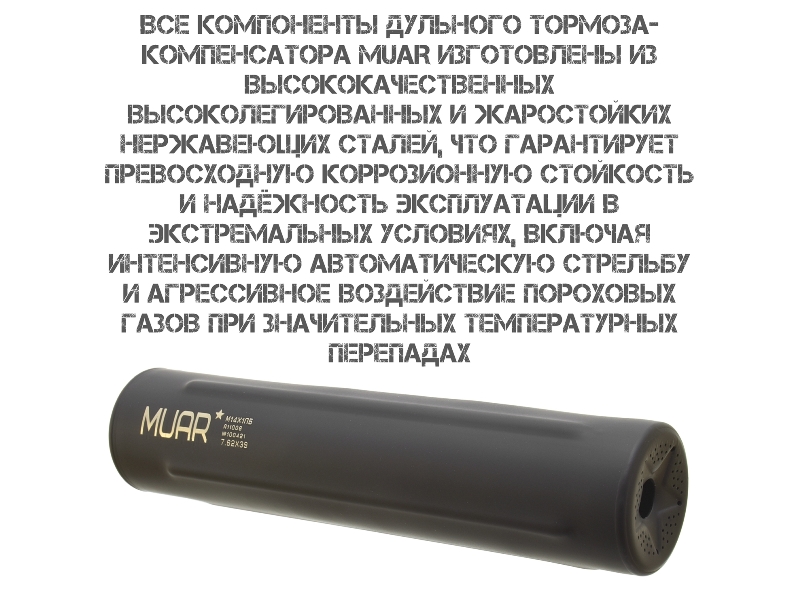 Современный ДТК закрытого типа от бренда Muar, специально разработанный для автоматов АК-12 и TR3 gen2 калибра 5.45х39мм. Модель Heavy Metal с байонетным креплением выполнена из высококачественной нержавеющей стали, гарантирующей исключительную надежность в любых условиях эксплуатации.