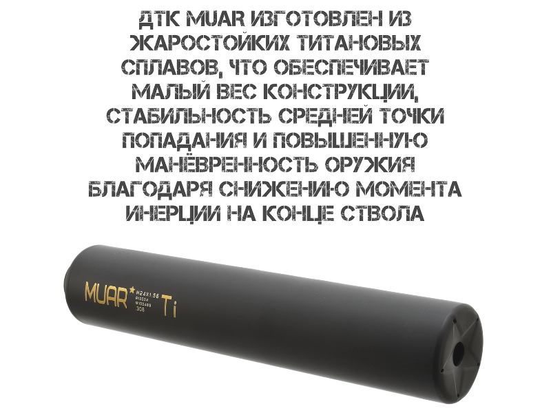Профессиональный ДТК закрытого типа от бренда Muar, разработанный специально для карабинов Сайга-308 и Сайга-МК под патроны 7,62х39мм. Модель оснащена резьбой 24x1,5r и выполнена из высококачественного титана.