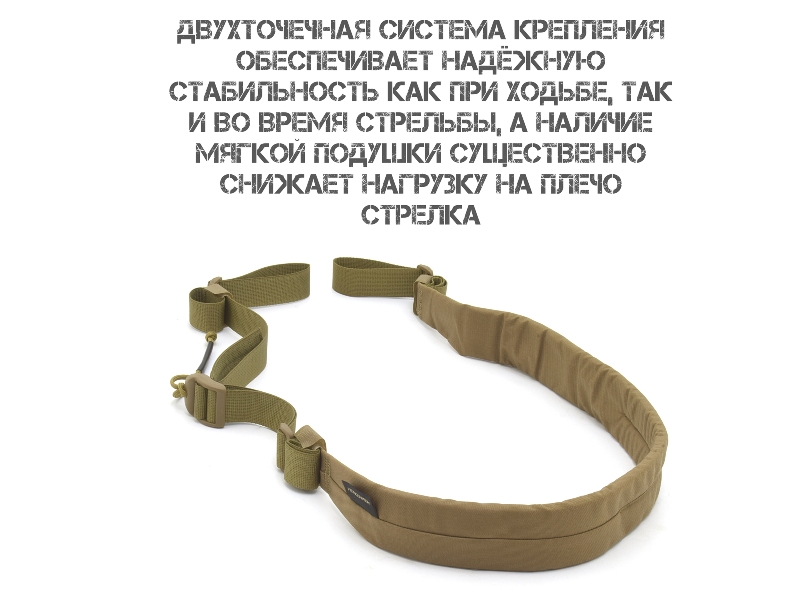 Эргономичная конструкция с двухточечной системой крепления гарантирует надёжную фиксацию оружия в любом положении. Отсутствие антабок в базовой комплектации позволяет самостоятельно подобрать и установить крепления, оптимально подходящие под ваше оружие. Особая система регулировки позволяет мгновенно переводить ремень из походного положения в рабочее и обратно, что существенно экономит время в критических ситуациях.