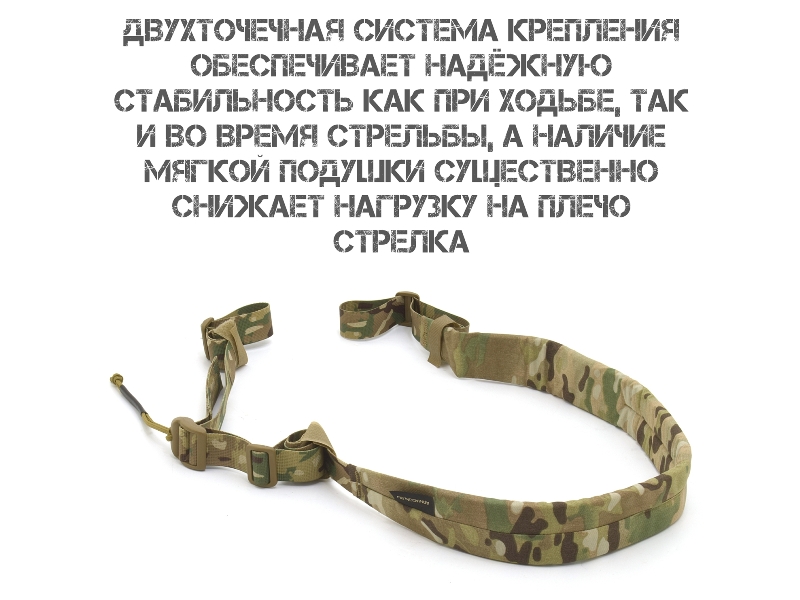 Продуманная конструкция с двухточечной системой крепления гарантирует надёжное удержание оружия при передвижении и ведении огня. Отсутствие предустановленных антабок даёт возможность индивидуально настроить систему креплений под конкретное оружие. Инновационная система регулировки позволяет моментально переводить ремень из походного положения в боевое, что критически важно в условиях реального применения.