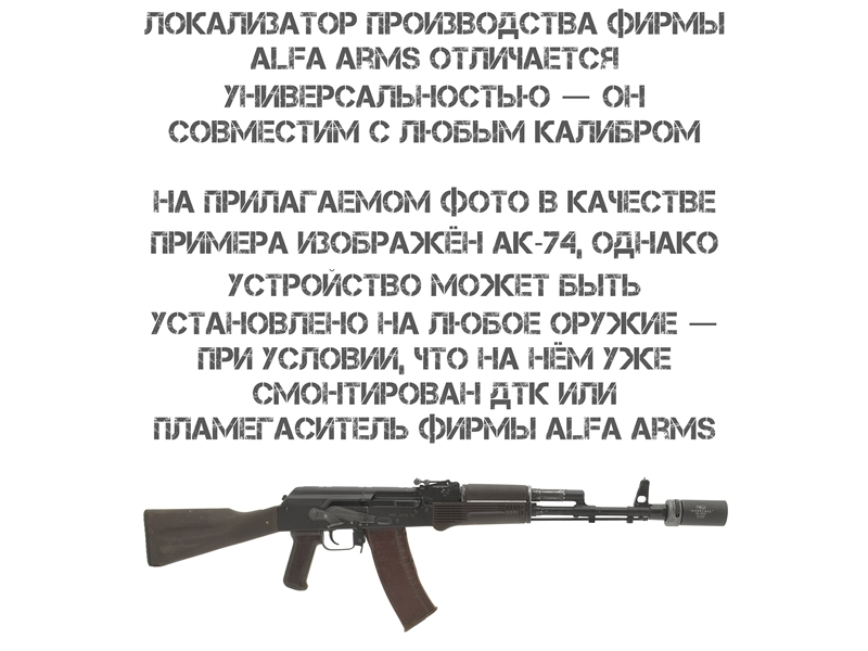 Локализатор устанавливается на базу-адаптер (ДТК или пламегаситель Alfa Arms), который приобретается отдельно.