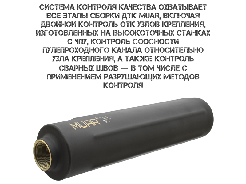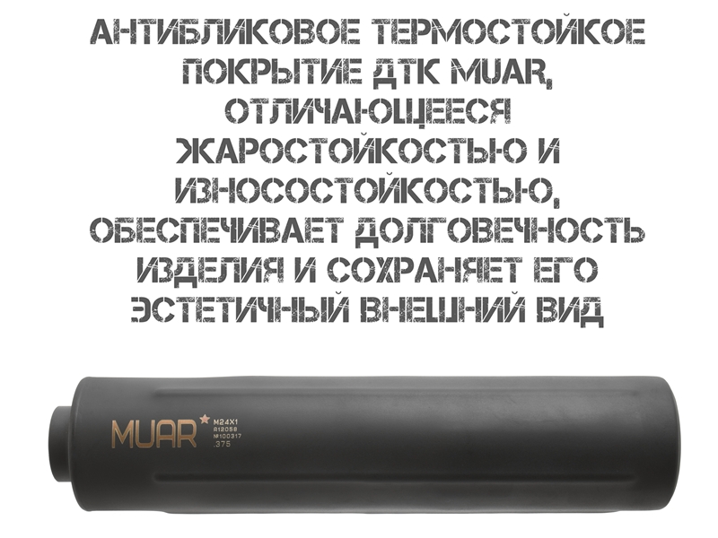 Газоразгруженный ДТК закрытого типа (банка) Muar — профессиональное дульное устройство для высокоточных винтовок Lobaev Arms «Севастополь» и «Сумрак» под патрон .375 Chey Tac с креплением M24×1. Разработан для стрелков, которым критически важны точность, ресурс и комфорт при стрельбе на сверхдальние дистанции.