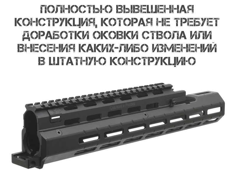 Вывешенная конструкция: минимизирует влияние цевья на колебания ствола, повышая точность стрельбы.