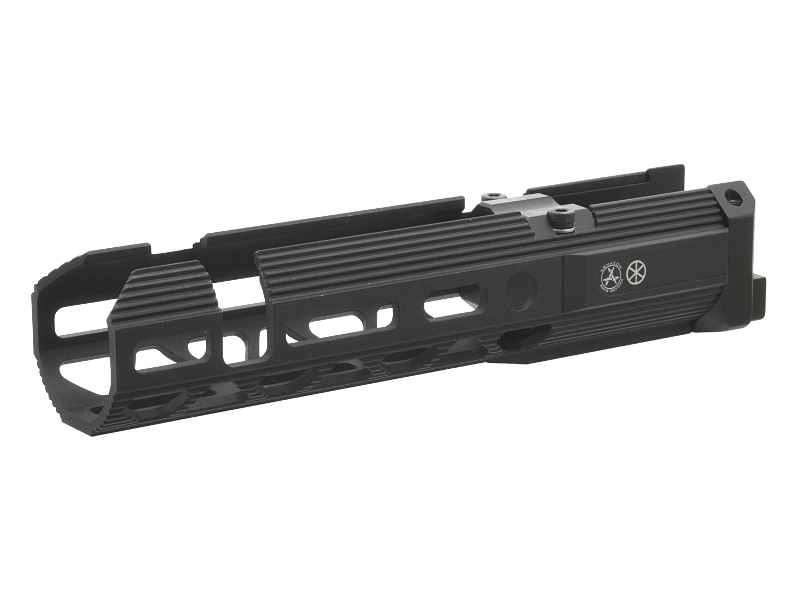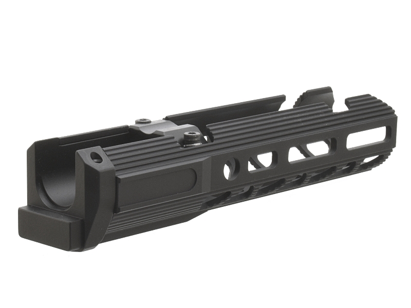 Система M‑Lok: позволяет оперативно монтировать тактические аксессуары (фонари, лазерные целеуказатели, вертикальные рукоятки, сошки) без использования специализированных инструментов.