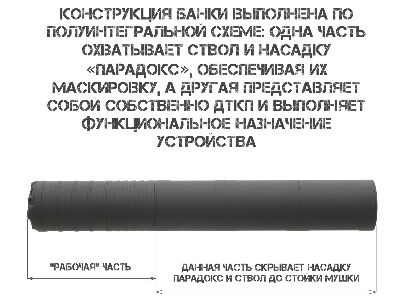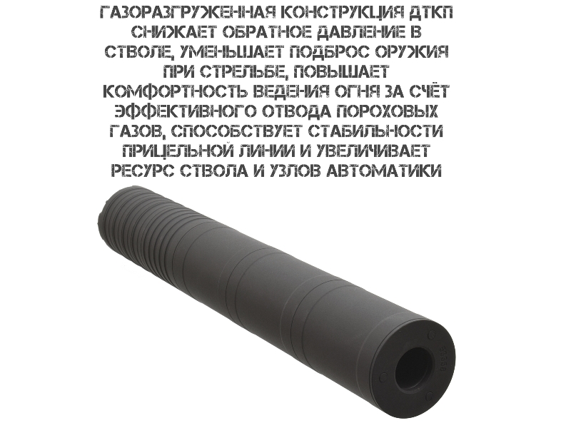 Мощное подавление звука: снижает звуковое давление на ~25–30 дБ, минимизируя акустическую нагрузку на стрелка и уменьшая вероятность обнаружения.