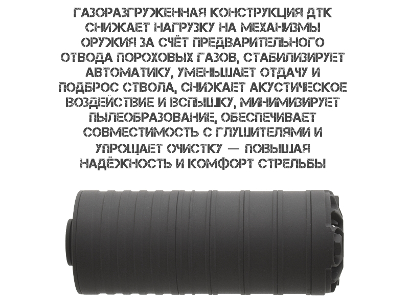 дульного тормоза — снижает импульс отдачи, повышая комфорт стрельбы;