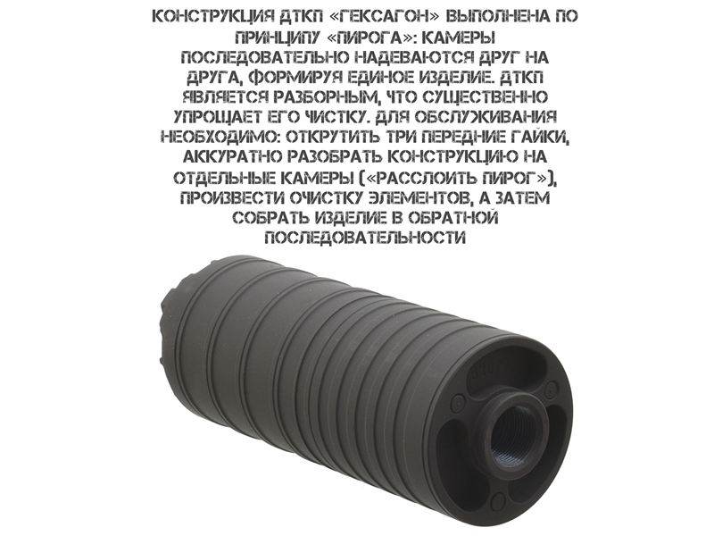 ДТК газоразгруженный (банка) ПП Витязь, Сайга-9, TR9, TG2s, TR9s (на насадку парадокс), «Поток» укороченный 5 камер Гексагон 16x1
