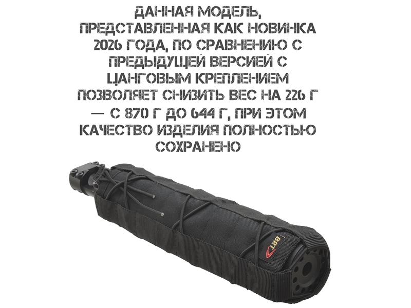 Модель 2026 года — новинка в линейке BRT: она на 226 г легче аналогов с цанговым зажимом, что существенно снижает общую массу оружия и повышает удобство обращения.