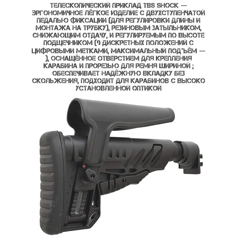 База приклада TBS Shock: эргономичная база с регулируемым подщечником и снижающим отдачу затыльником.