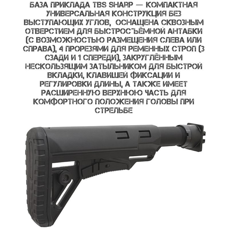 База приклада TBS Sharp: компактная база без выступающих углов с широкими возможностями крепления аксессуаров и удобной регулировкой длины.
