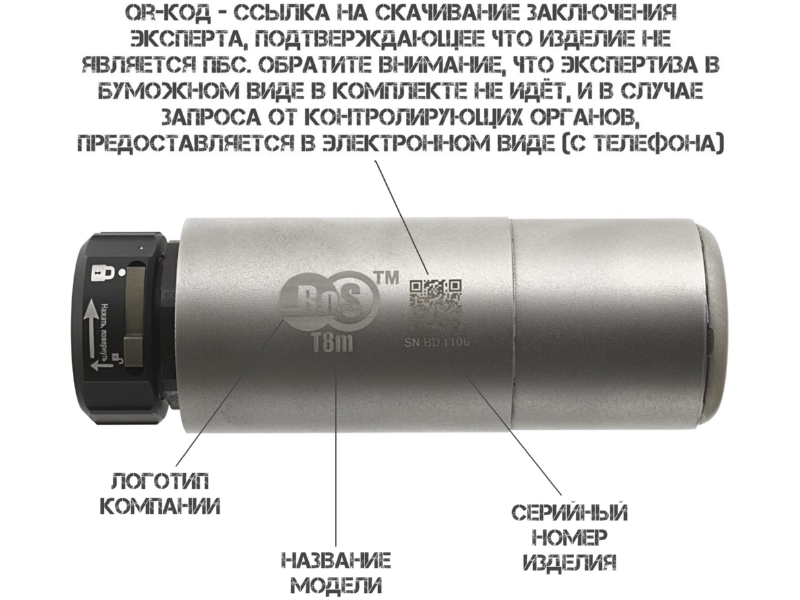 Устройство устанавливается поверх штатного несъёмного пламегасителя и оснащено быстросъёмным зажимом BoS T8m — благодаря этому монтаж и демонтаж занимают считаные секунды без использования дополнительных инструментов. Такая конструкция даёт возможность оперативно адаптировать оружие под текущие задачи: например, быстро снять ДТКП для транспортировки или установить его перед выполнением боевой задачи.