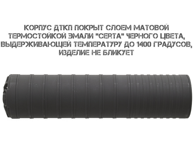полностью подавляет вспышку за счёт дожигания остатков пороха;