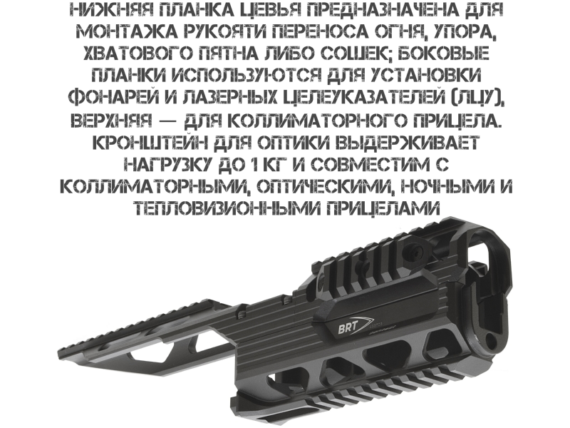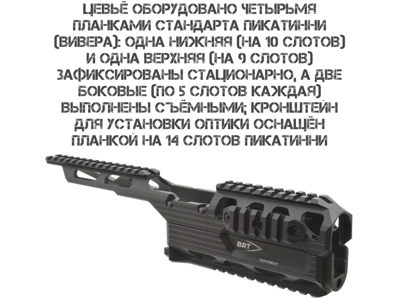 Тактическое цевьё BRT Contact — это сочетание продуманного дизайна, надёжности и функциональности. Оно позволит адаптировать ваше оружие под любые задачи: от спортивной стрельбы до тактических операций.