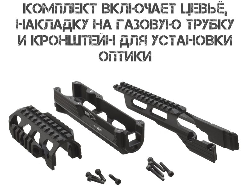 Цевьё тактическое с кронштейном с планкой Пикатини BRT (БРТ) Contact (Контакт) на АК 74, АКМ, АК 105, Сайга МК, чёрное