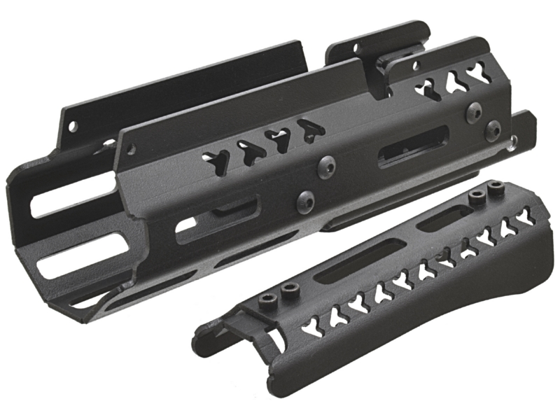 Цевьё крепится на посадочное устройство, фиксируемое на оружии за вкладыш в ствольную коробку и зажим на патроннике. В комплект входит кронштейн: он крепится за цевьё и в задней точке — винтом пистолетной рукояти (подходит для штатной и тюнингованной рукояти). Кронштейн оснащён основанием M‑Lock.