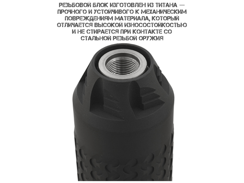 • Прочность и износостойкость: резьбовой блок из титана устойчив к механическим повреждениям и не стирается при контакте со стальной резьбой оружия.