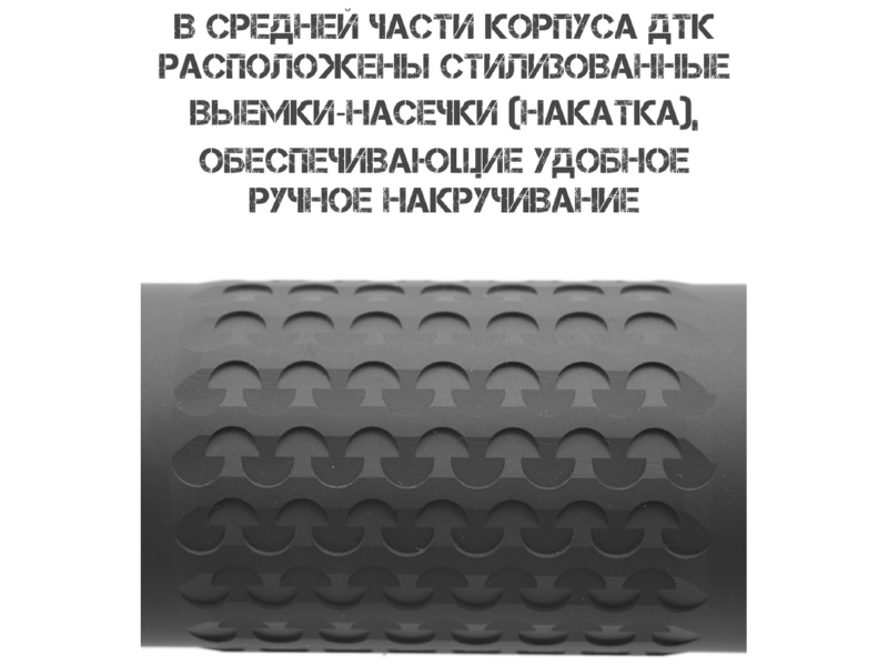 • Выемки насечки (накатка) в средней части корпуса: обеспечивают удобное ручное накручивание.