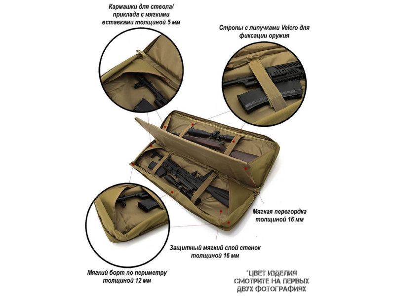 Вместительность: вмещает две единицы оружия (в собранном или разобранном виде) плюс оптику. Подходит для: