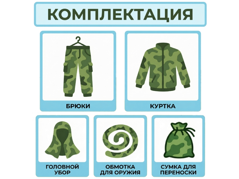 1 комплект (Куртка, брюки, панама, лента для оружия)