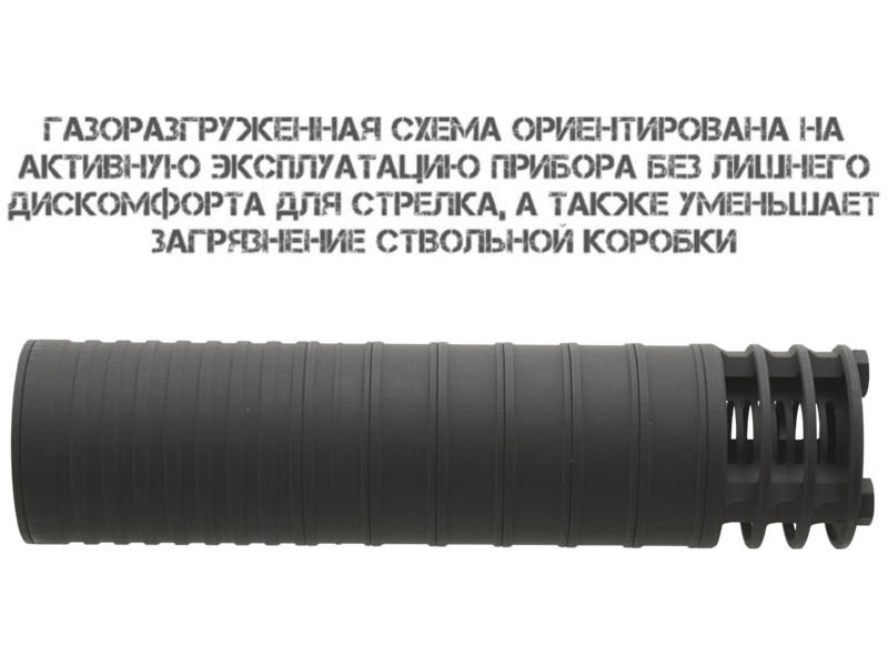 Прибор снижает уровень звука на выходе до 137–139 дБ, что делает стрельбу комфортнее и снижает акустическую заметность стрелка. Подавление вспышки повышает маскировочные свойства оружия, особенно в сумерках и ночью.
