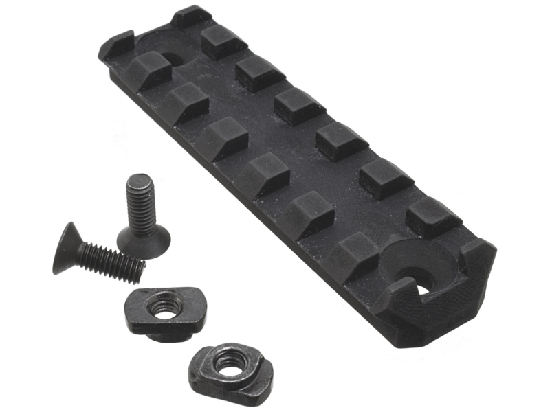 Планка Пикатини стандарта Picatinny (MIL STD 1913) с 7 монтажными слотами — элемент тактического обвеса. Совместима с системой крепления M Lok: устанавливается непосредственно на цевья с соответствующими пазами. Конструкция обеспечивает надёжное удержание аксессуаров и их точную фиксацию без люфтов.