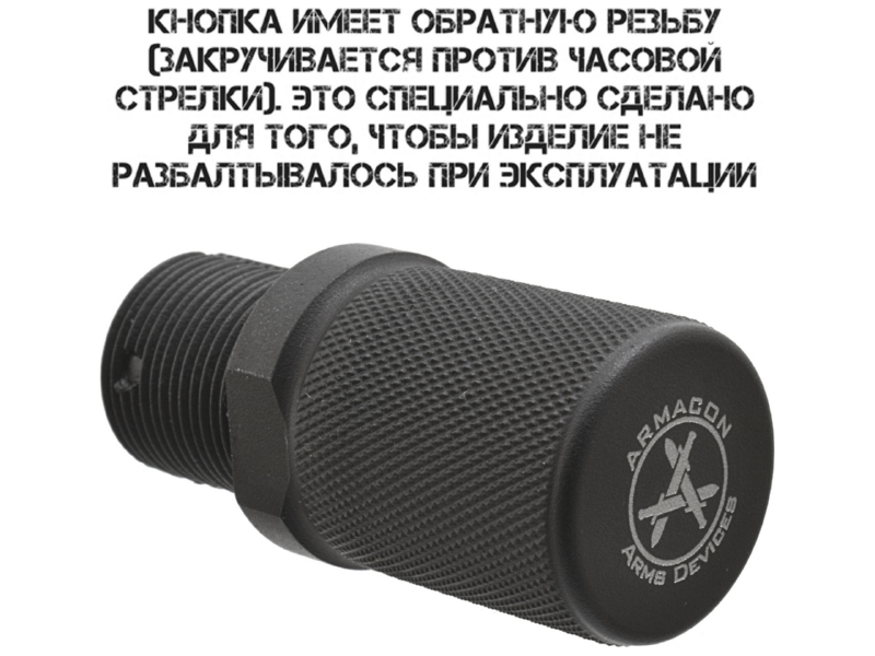 Обратная резьба. Изделие накручивается против часовой стрелки — это предотвращает самопроизвольное ослабление крепления во время эксплуатации и гарантирует, что накладка останется на месте даже при интенсивной стрельбе и тряске.