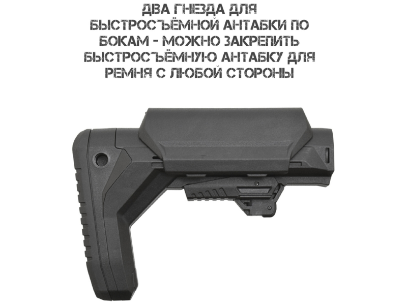 Два гнезда для антабки. По бокам приклада предусмотрены гнёзда для быстросъёмной антабки — ремень можно закрепить с любой стороны.