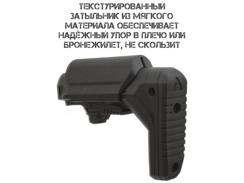 Текстурированный затыльник. Изготовлен из мягкого нескользящего материала, обеспечивает надёжный упор в плечо или бронежилет.
