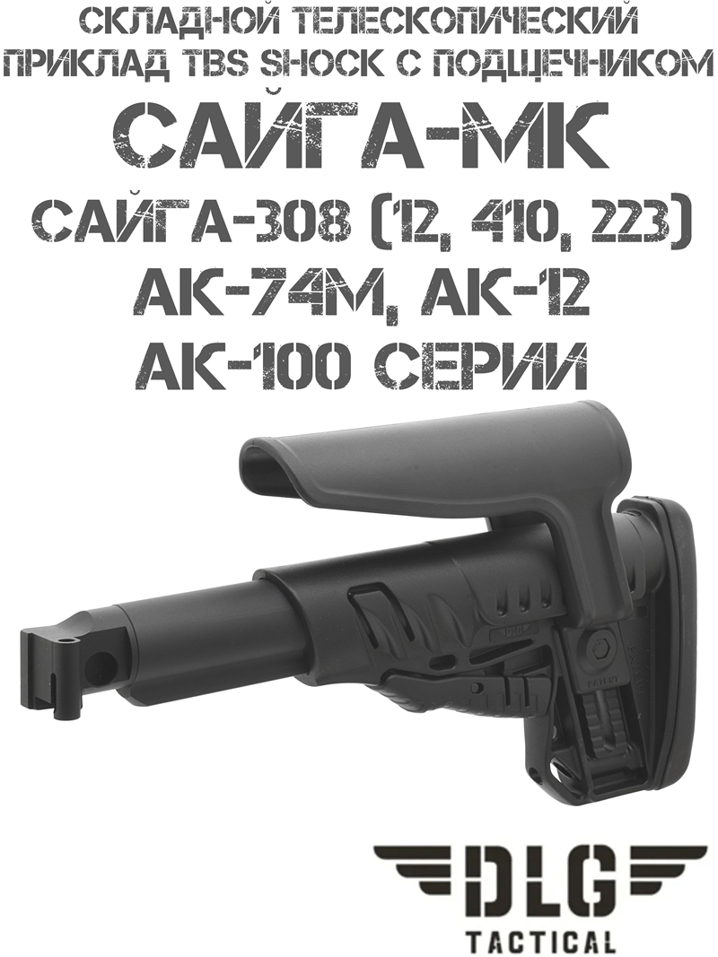 Складной телескопический приклад в сборе с подщечником TBS Shock Сайга-МК, Сайга-308 (12, 410, 223), АК-12, АК-74м DLG 3002