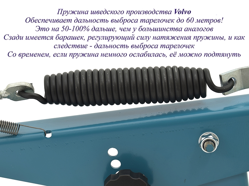 Надежная и долговечная пружина обеспечивает выброс тарелок до 60 метров.
